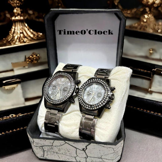 2 Pcs Unisex Stainless Steel Chronograph Couple Watches - Round Multicolor Design | luxury for both!